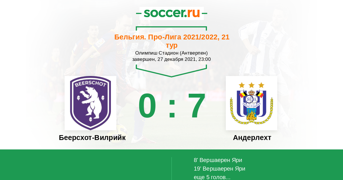 Беерсхот-Вилрийк - Андерлехт: обзор матча 27 декабря 2021