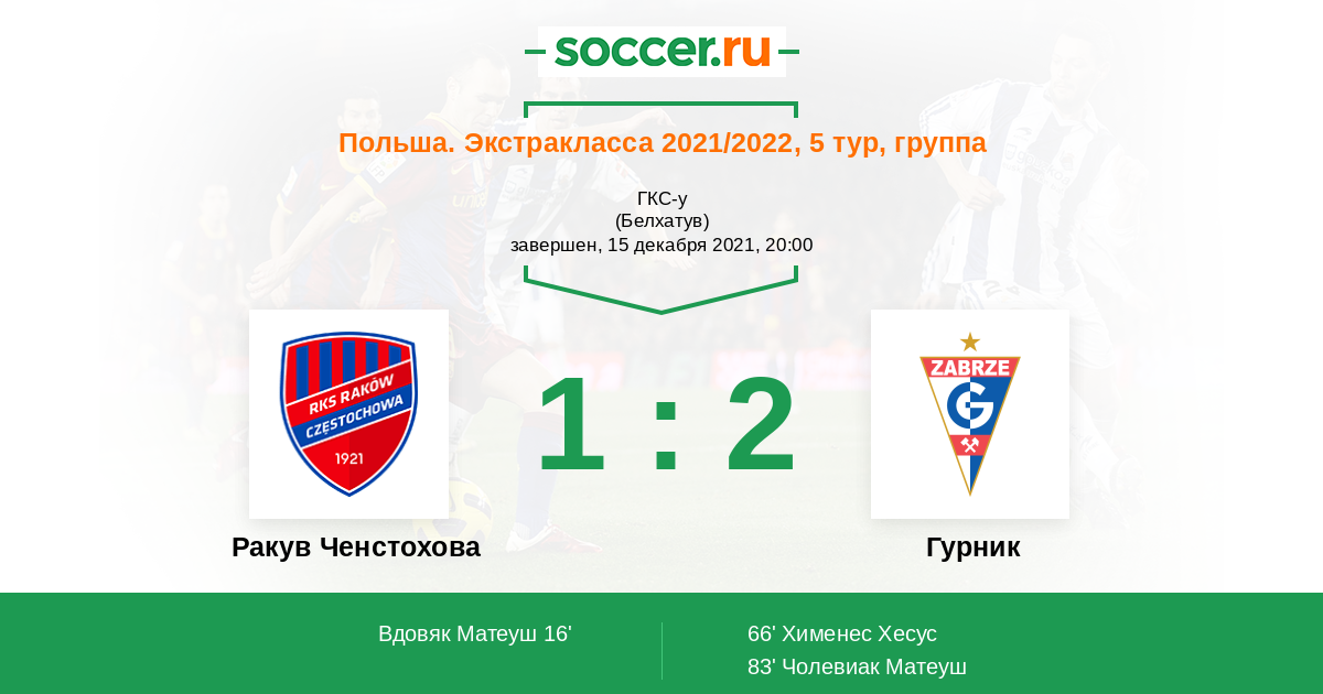 Ракув Ченстохова - Гурник: обзор матча 15 декабря 2021