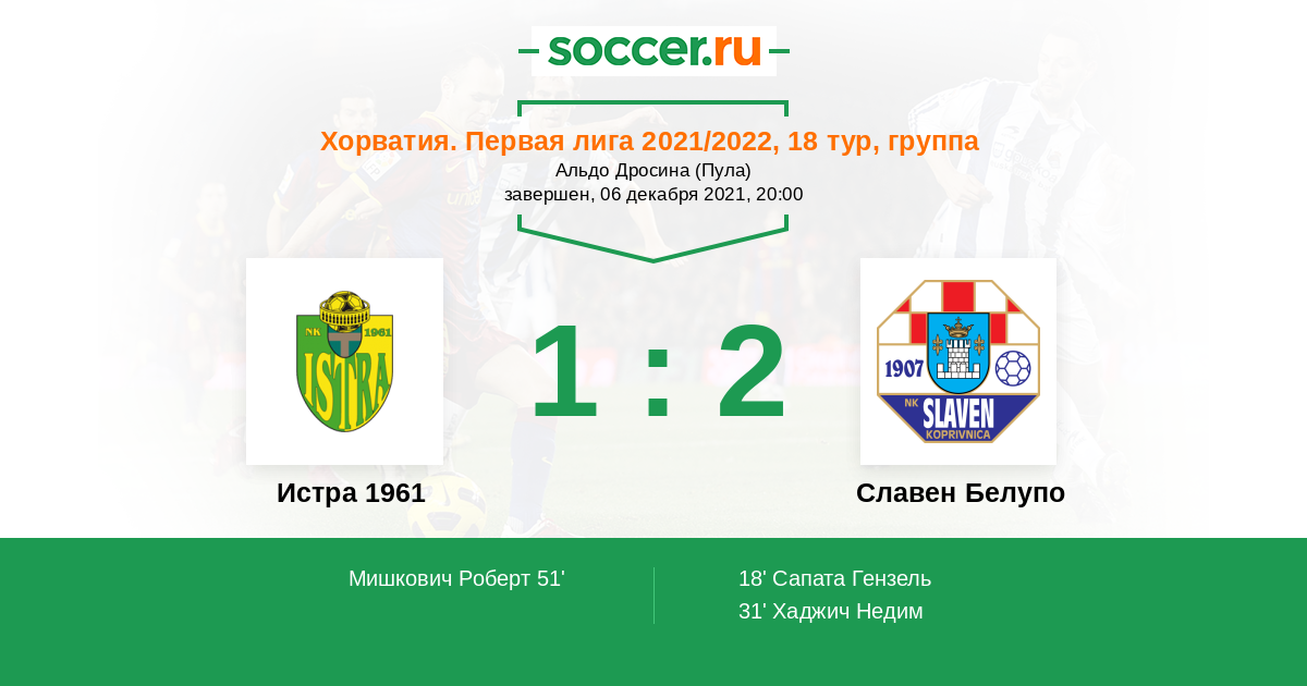 Истра 1961 - Славен Белупо: обзор матча 6 декабря 2021