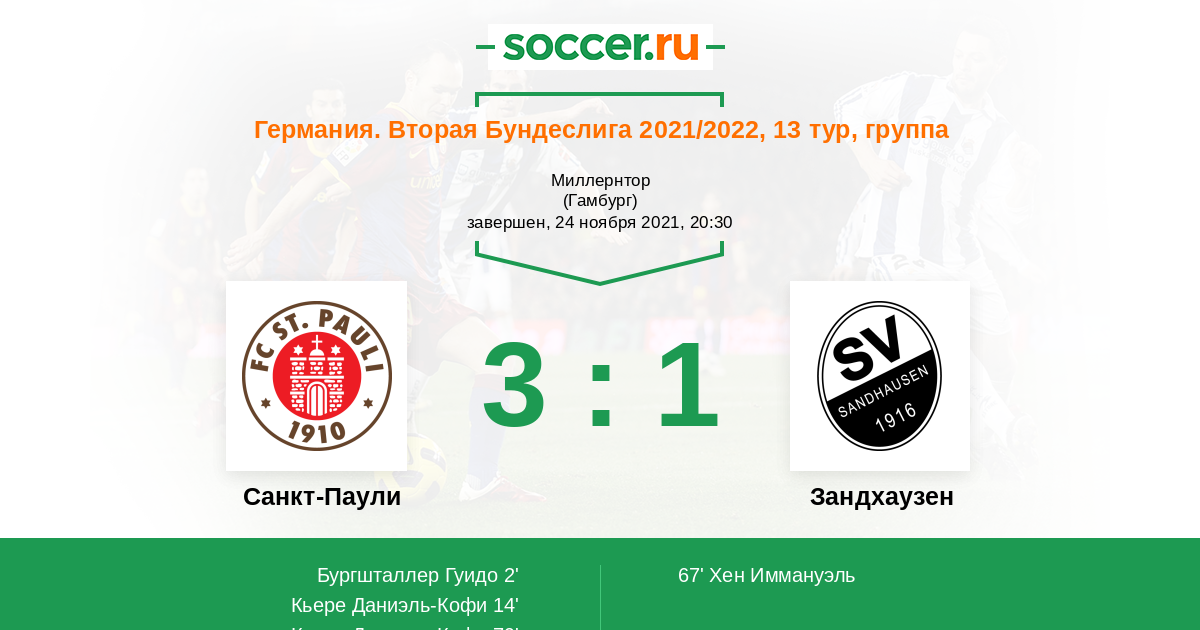 Санкт-Паули - Зандхаузен: обзор матча 24 ноября 2021