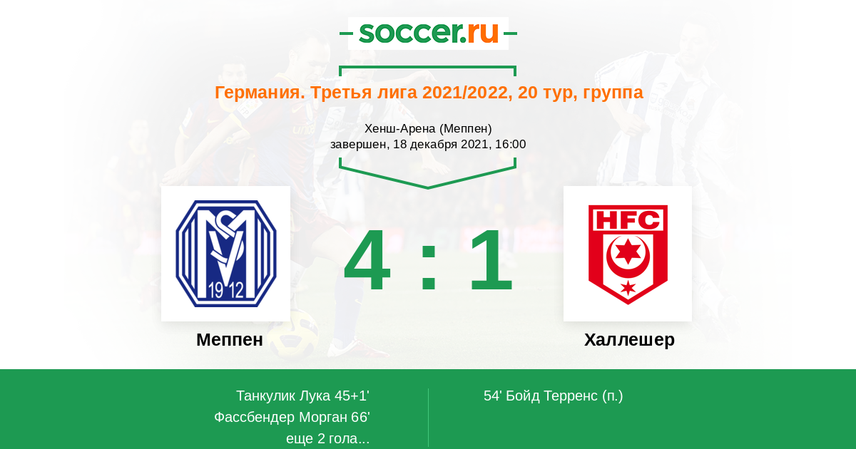 Меппен - Халлешер: обзор матча 18 декабря 2021