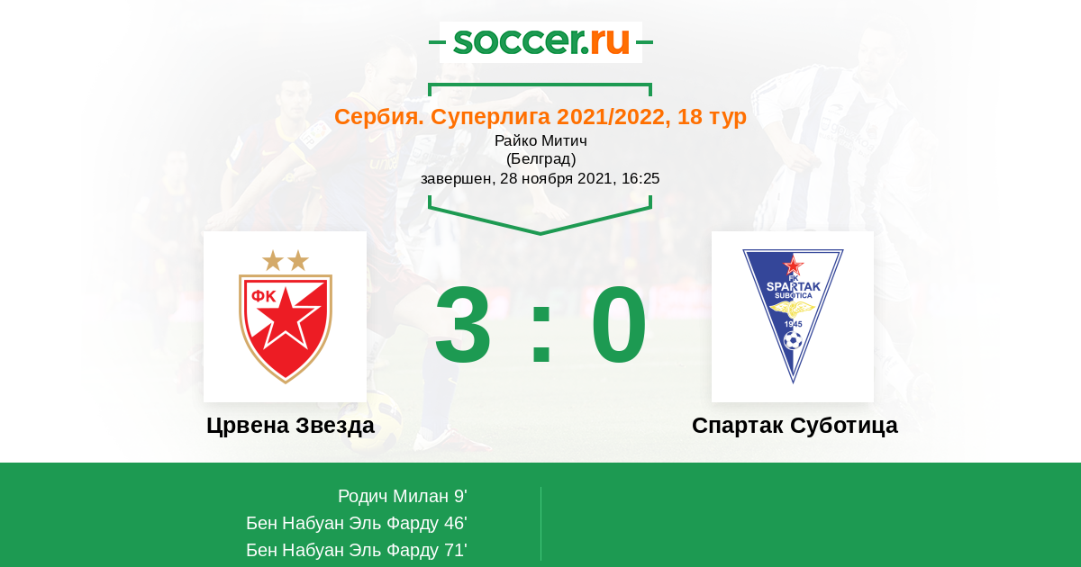 Црвена Звезда - Спартак Суботица: обзор матча 28 ноября 2021