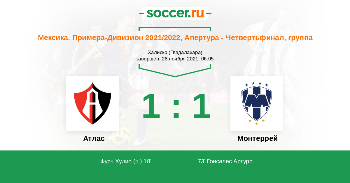 Атлас - Монтеррей: обзор матча 28 ноября 2021