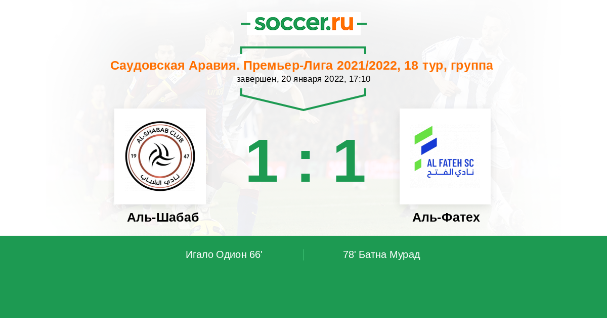 Аль-Шабаб - Аль-Фатех: обзор матча 20 января 2022
