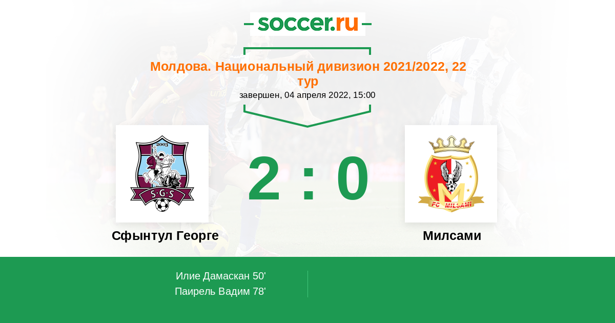Сфынтул Георге - Милсами: обзор матча 4 апреля 2022