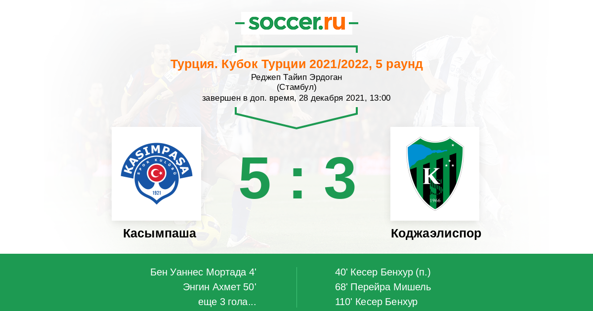Касымпаша - Коджаэлиспор: обзор матча 28 декабря 2021