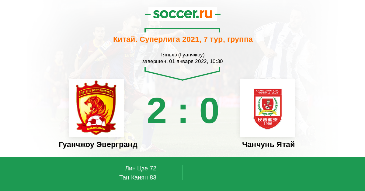 Гуанчжоу Эвергранд - Чанчунь Ятай: обзор матча 1 января 2022