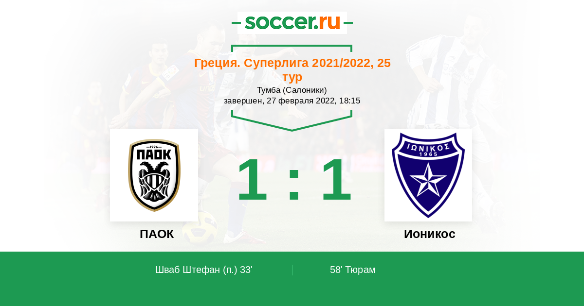 ПАОК - Ионикос: обзор матча 27 февраля 2022