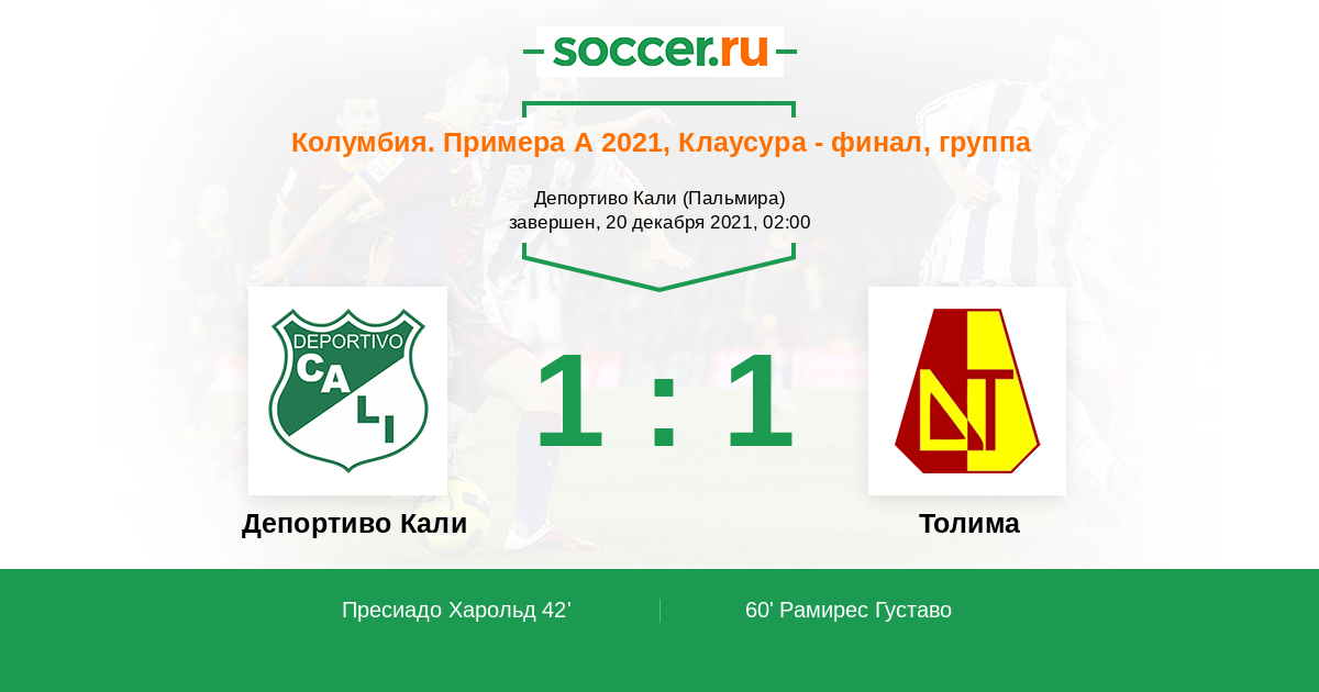 Депортиво Кали - Толима: обзор матча 20 декабря 2021
