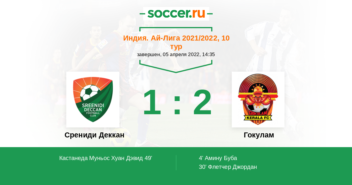 Срениди Деккан - Гокулам: обзор матча 5 апреля 2022