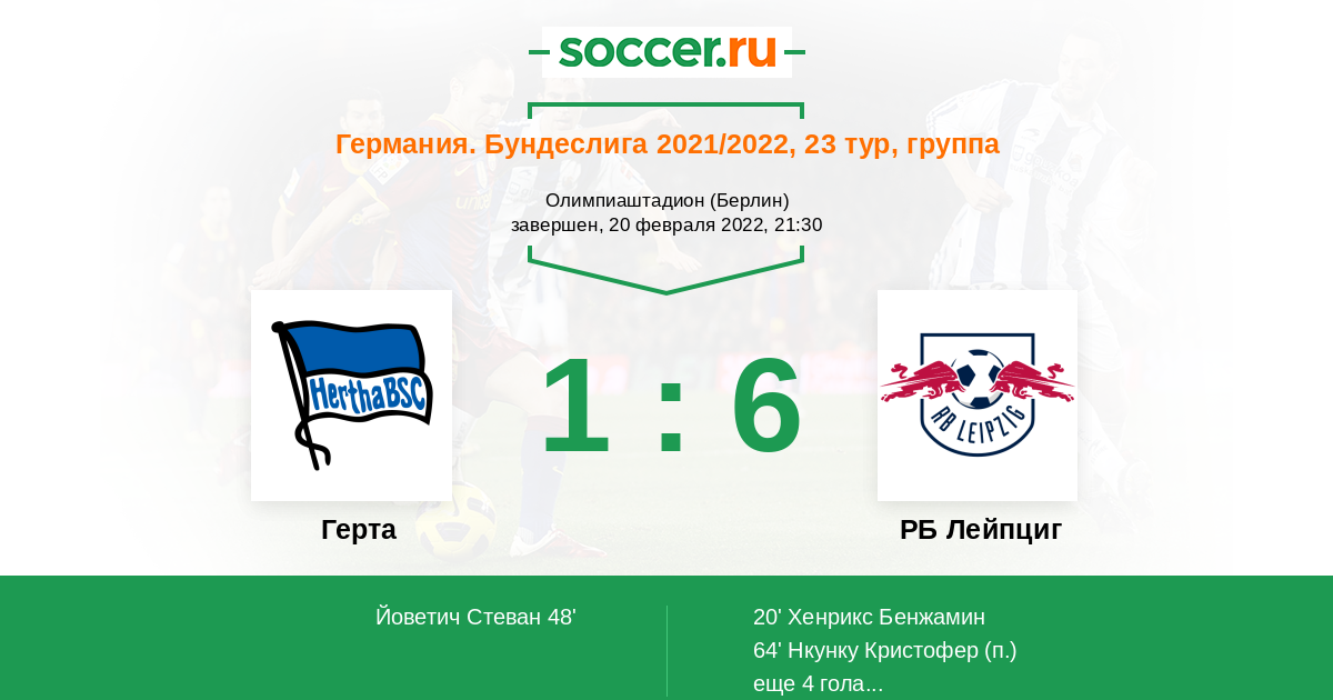 Герта - РБ Лейпциг: обзор матча 20 февраля 2022
