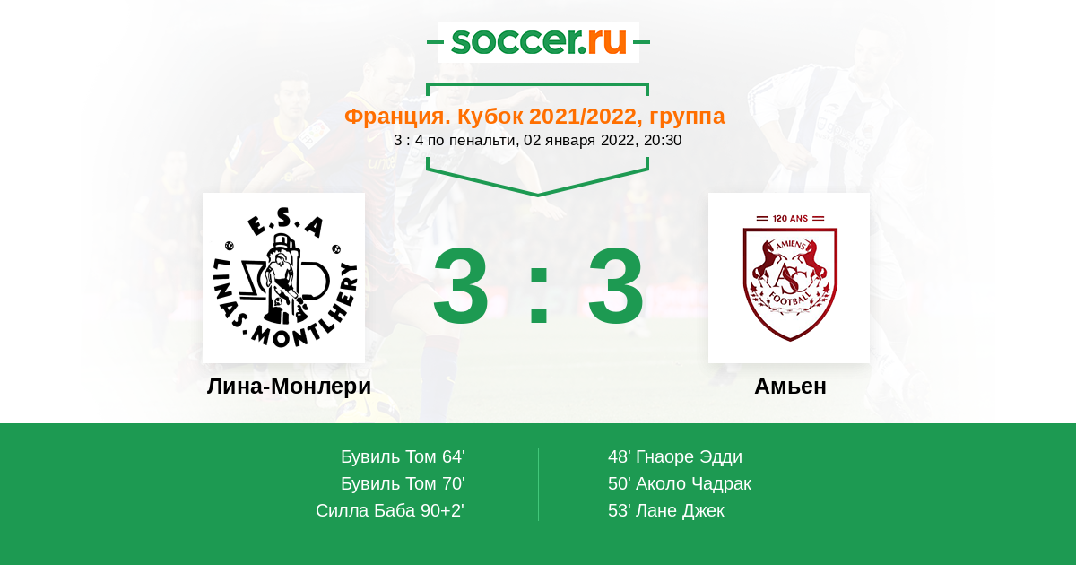 Лина-Монлери - Амьен: обзор матча 2 января 2022