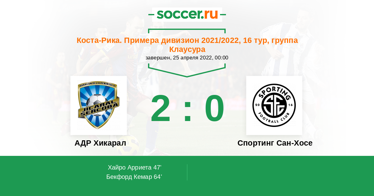 АДР Хикарал - Спортинг Сан-Хосе: обзор матча 25 апреля 2022