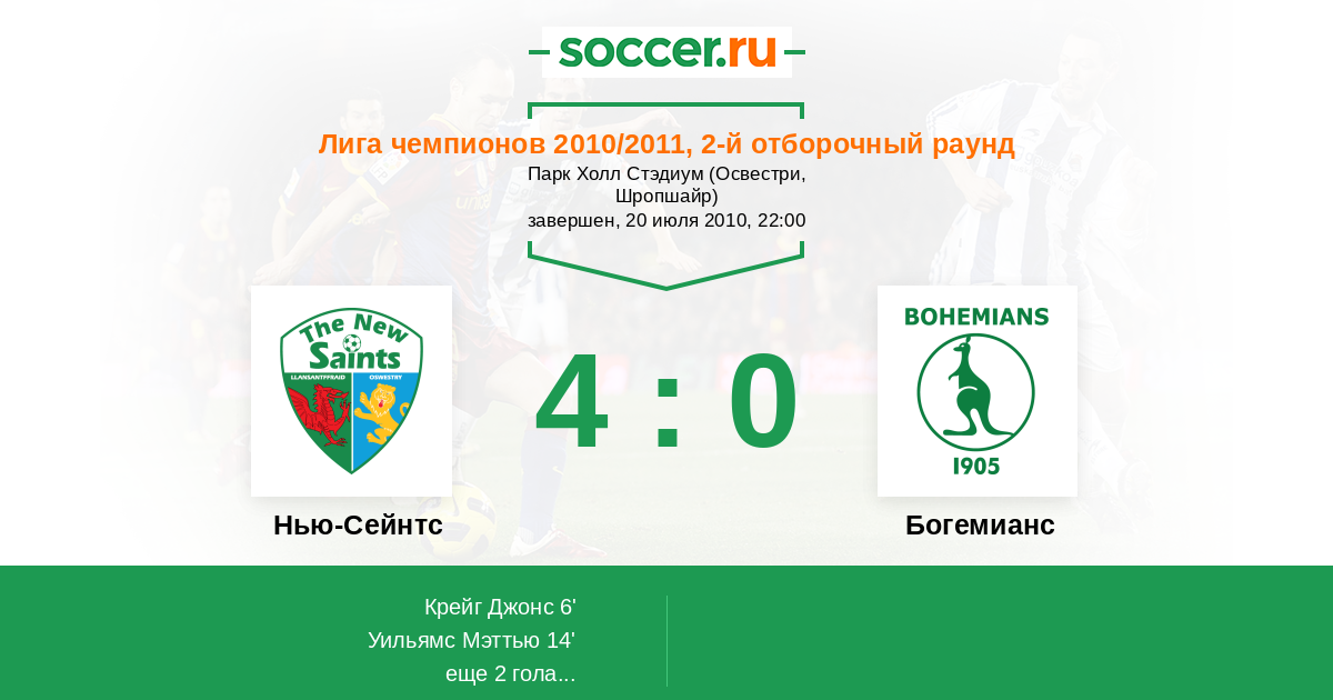 Нью-Сейнтс - Богемианс: обзор матча 20 июля 2010