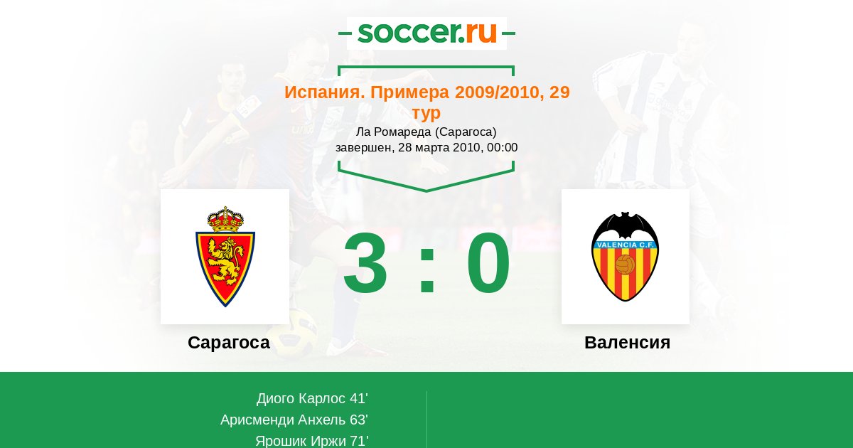 Сарагоса - Валенсия: обзор матча 28 марта 2010