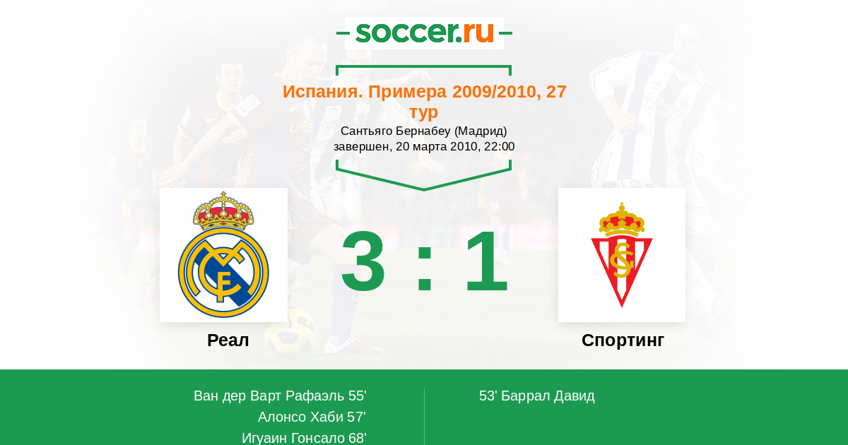 Реал - Спортинг: обзор матча 20 марта 2010