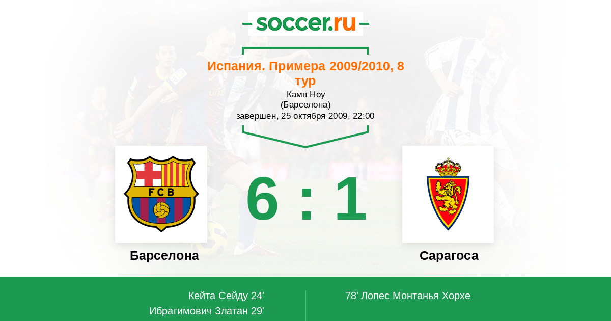 Барселона - Сарагоса: обзор матча 25 октября 2009
