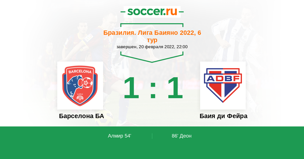 Барселона БА - Баия ди Фейра: обзор матча 20 февраля 2022