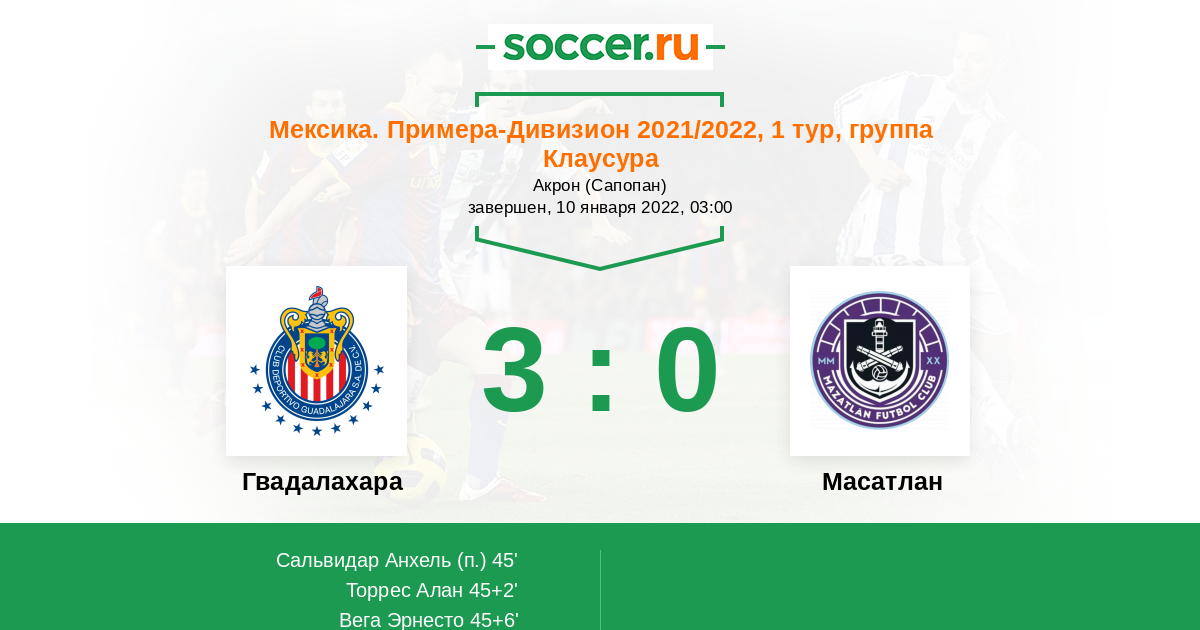 Гвадалахара - Масатлан: обзор матча 10 января 2022
