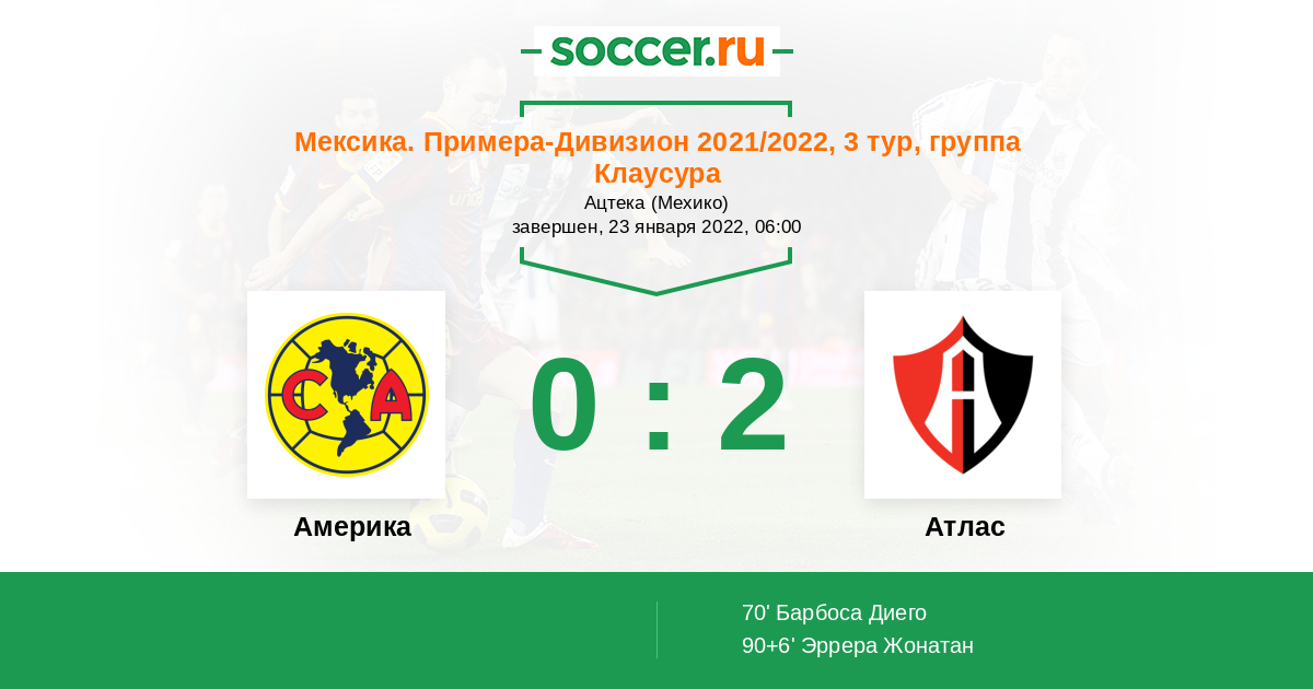 Америка - Атлас: обзор матча 23 января 2022