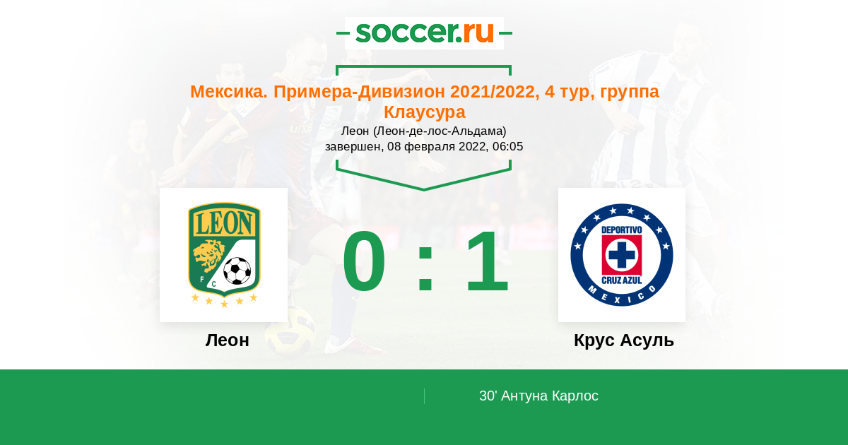 Леон - Крус Асуль: обзор матча 8 февраля 2022