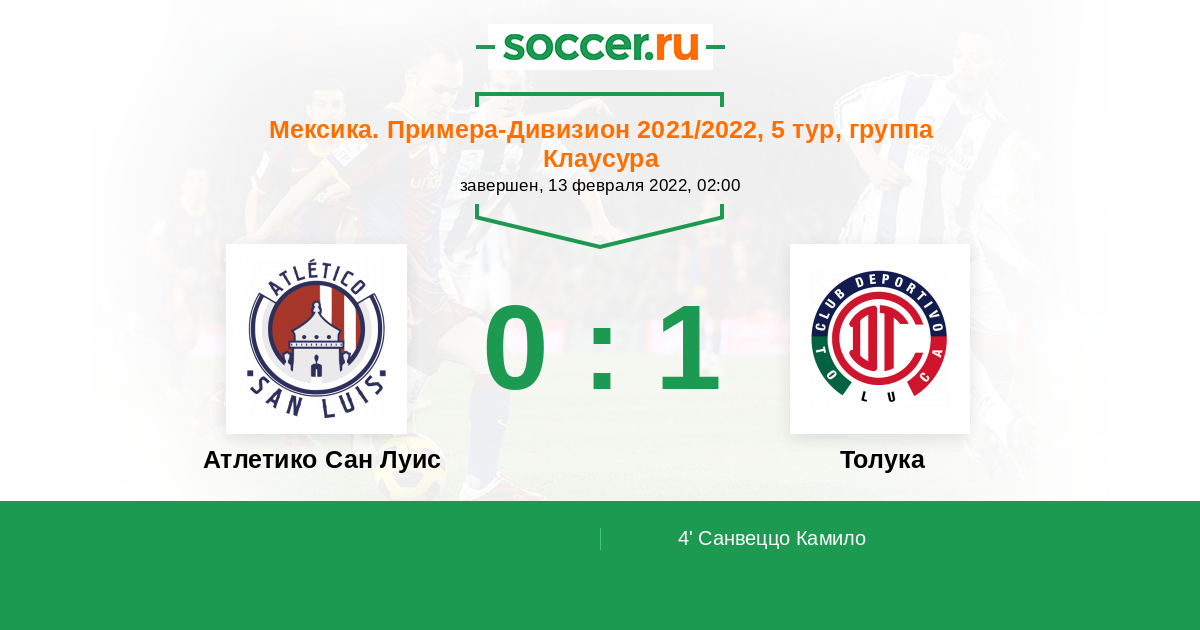 Атлетико Сан Луис - Толука: обзор матча 13 февраля 2022