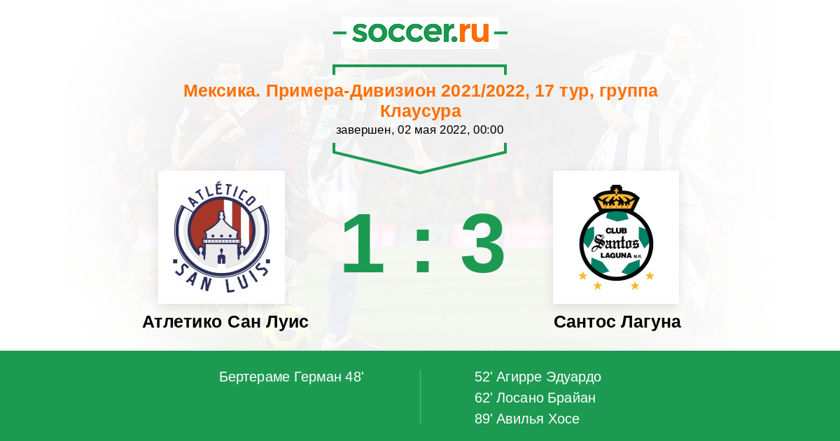 Атлетико Сан Луис - Сантос Лагуна: обзор матча 2 мая 2022