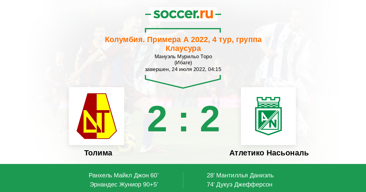 Толима - Атлетико Насьональ: обзор матча 24 июля 2022