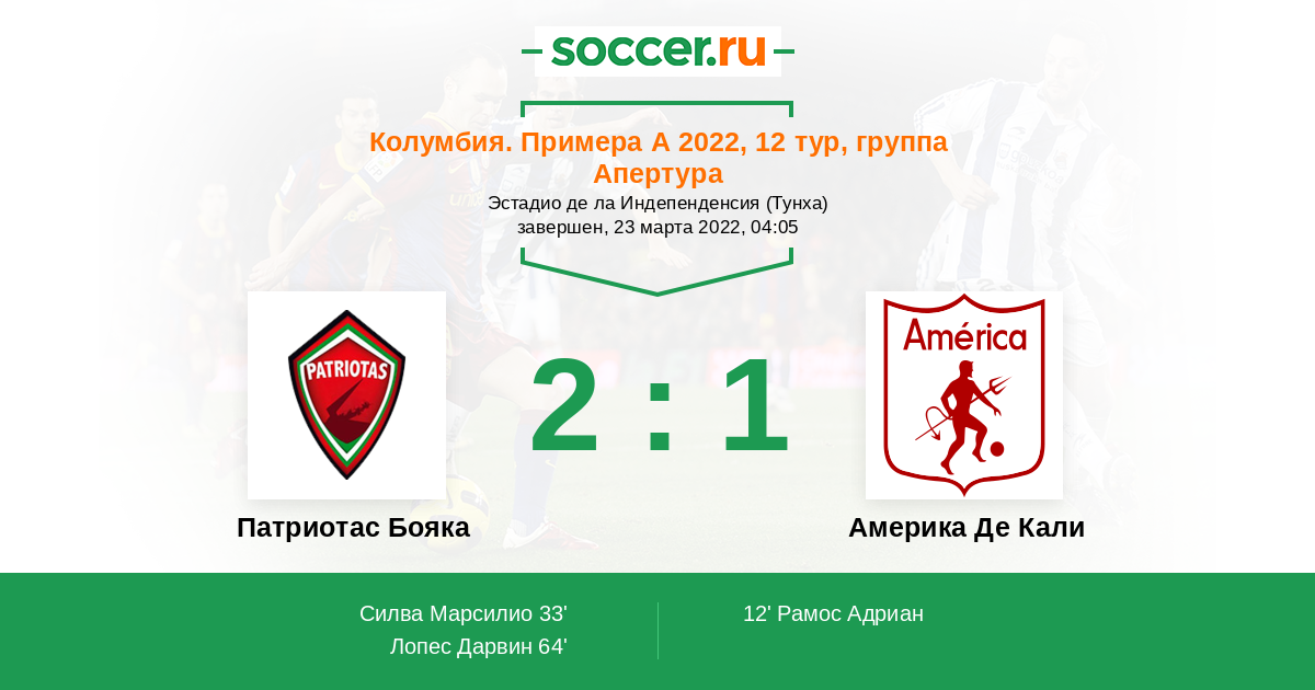 Патриотас Бояка - Америка Де Кали: обзор матча 23 марта 2022