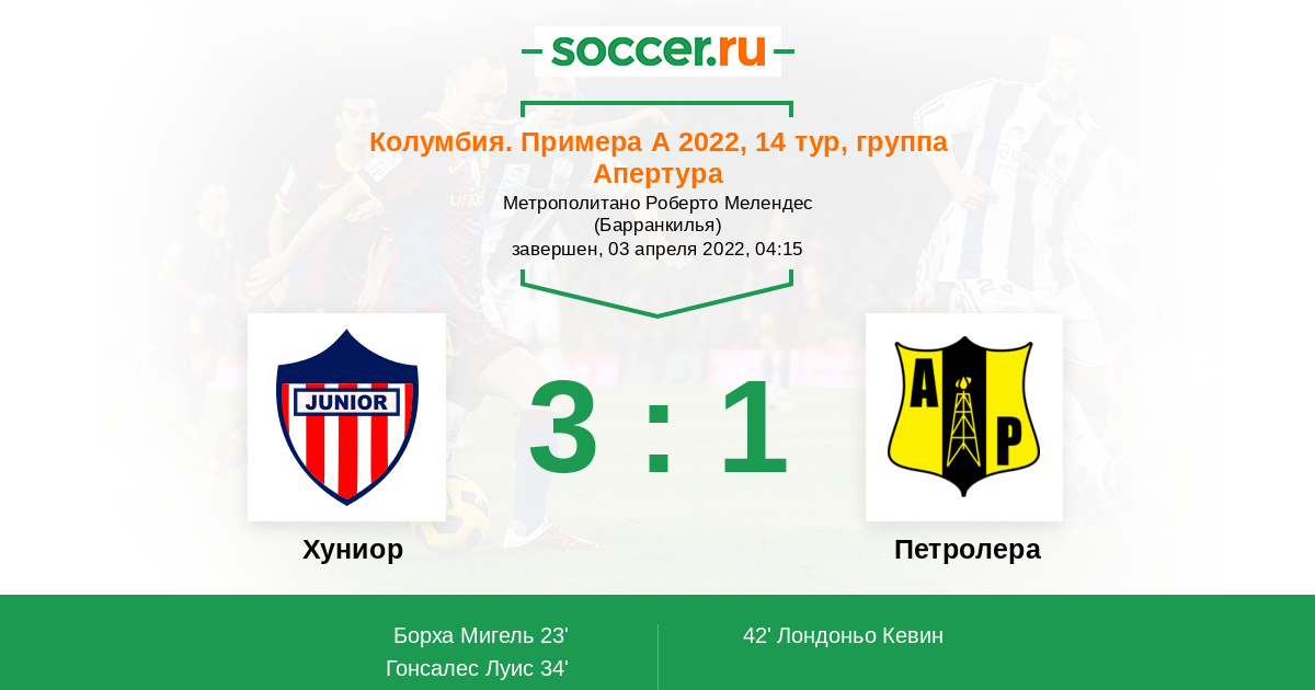 Хуниор - Петролера: обзор матча 3 апреля 2022