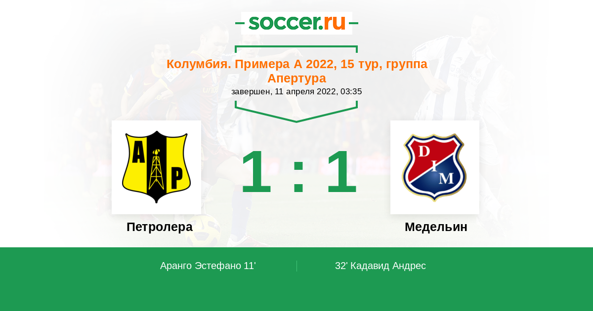 Петролера - Медельин: обзор матча 11 апреля 2022