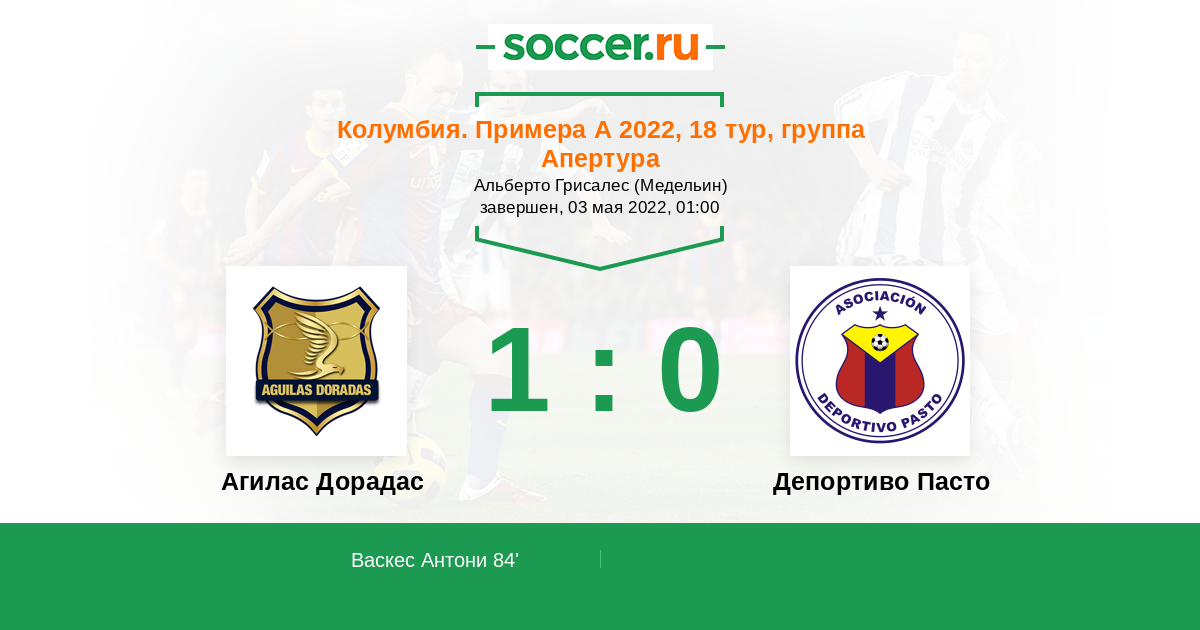 Агилас Дорадас - Депортиво Пасто: обзор матча 3 мая 2022