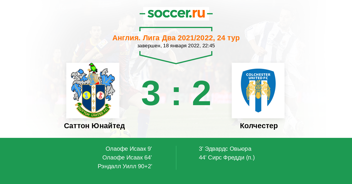 Саттон Юнайтед - Колчестер: обзор матча 18 января 2022