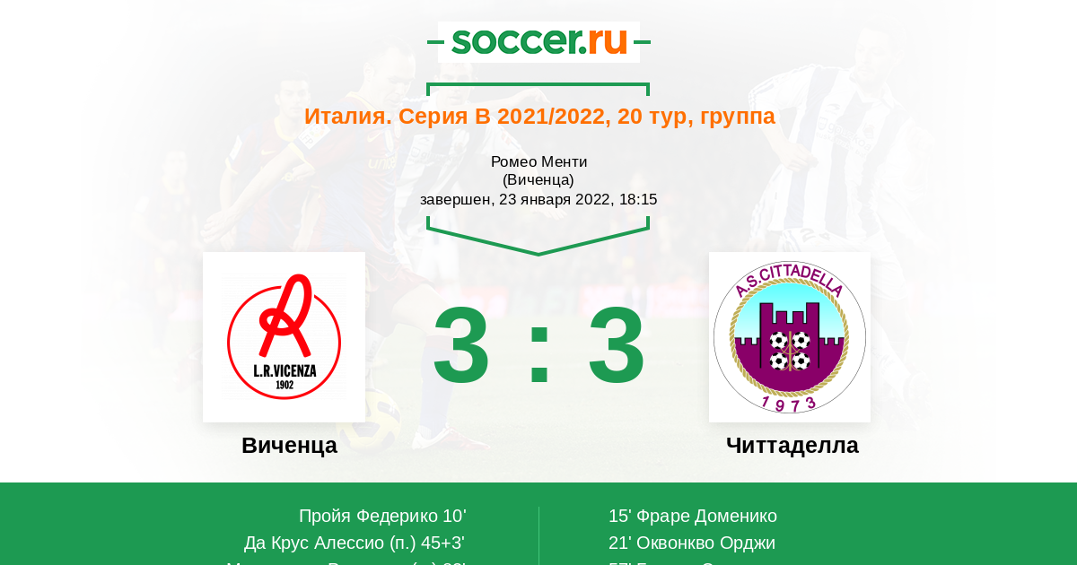 Виченца - Читтаделла: обзор матча 23 января 2022