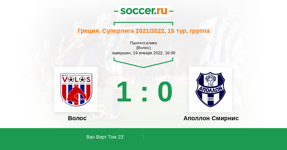 Волос - Аполлон Смирнис: обзор матча 19 января 2022