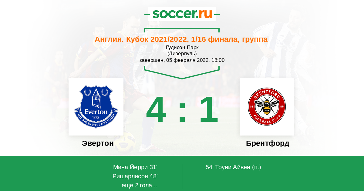Эвертон - Брентфорд: обзор матча 5 февраля 2022