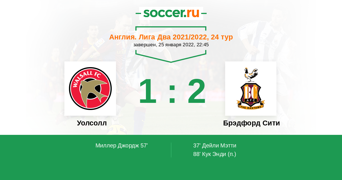 Уолсолл - Брэдфорд Сити: обзор матча 25 января 2022