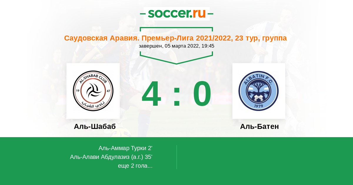 Аль-Шабаб - Аль-Батен: обзор матча 5 марта 2022