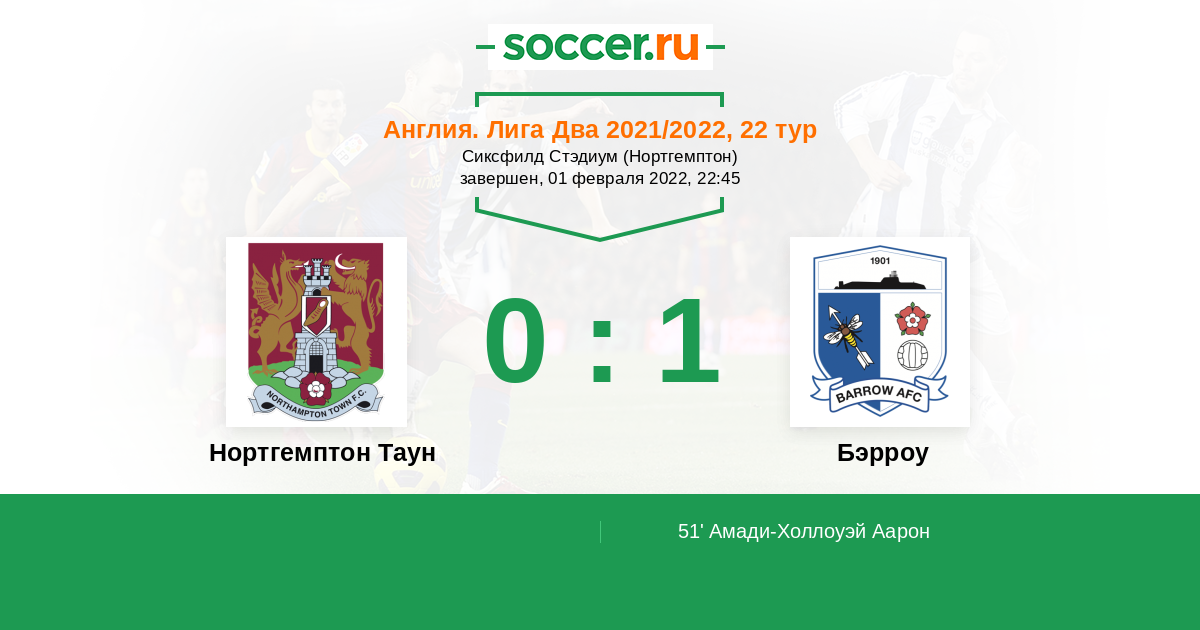 Нортгемптон Таун - Бэрроу: обзор матча 1 февраля 2022