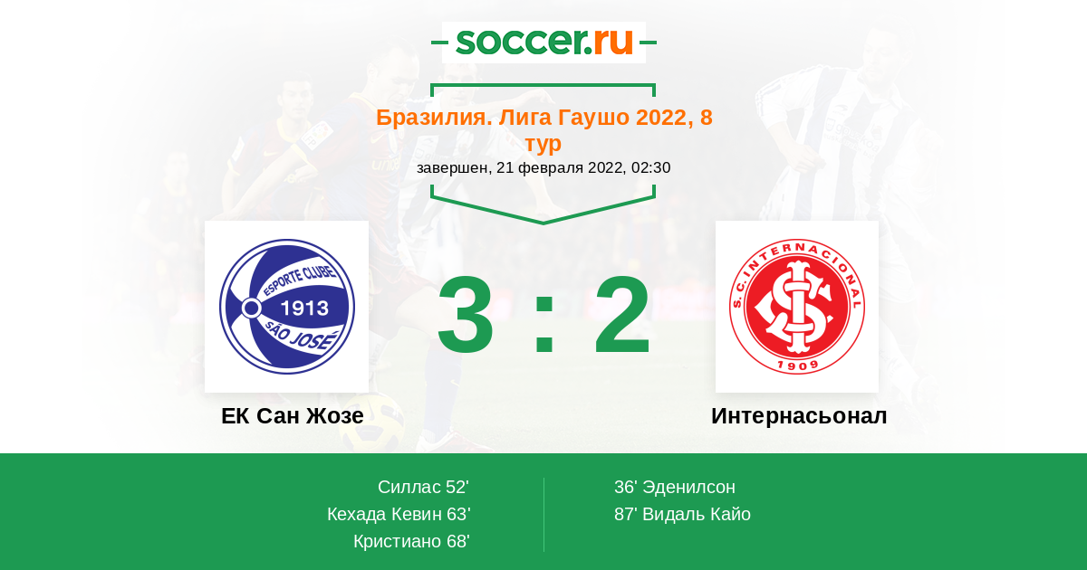 ЕК Сан Жозе - Интернасьонал: обзор матча 21 февраля 2022