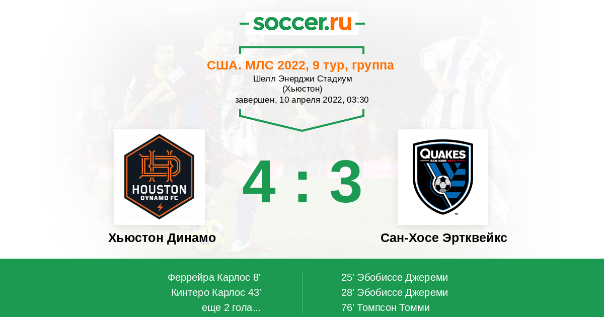 Хьюстон Динамо - Сан-Хосе Эртквейкс: обзор матча 10 апреля 2022