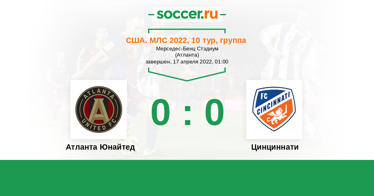 Атланта Юнайтед - Цинциннати: обзор матча 17 апреля 2022