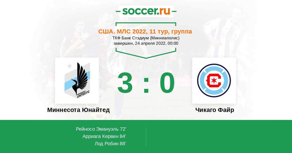 Миннесота Юнайтед - Чикаго Файр: обзор матча 24 апреля 2022