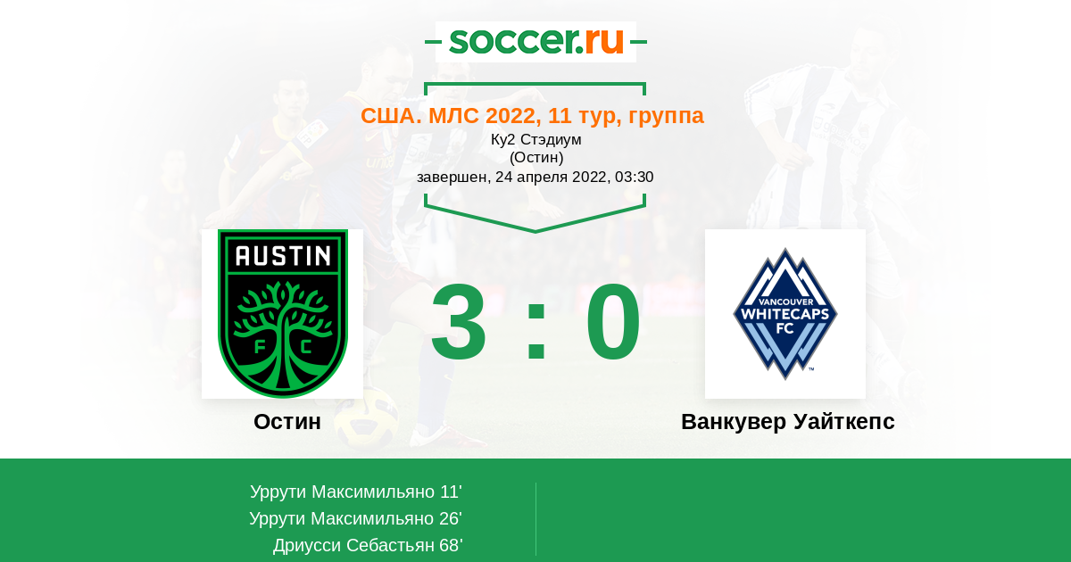 Остин - Ванкувер Уайткепс: обзор матча 24 апреля 2022