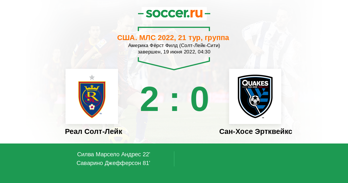 Реал Солт-Лейк - Сан-Хосе Эртквейкс: обзор матча 19 июня 2022