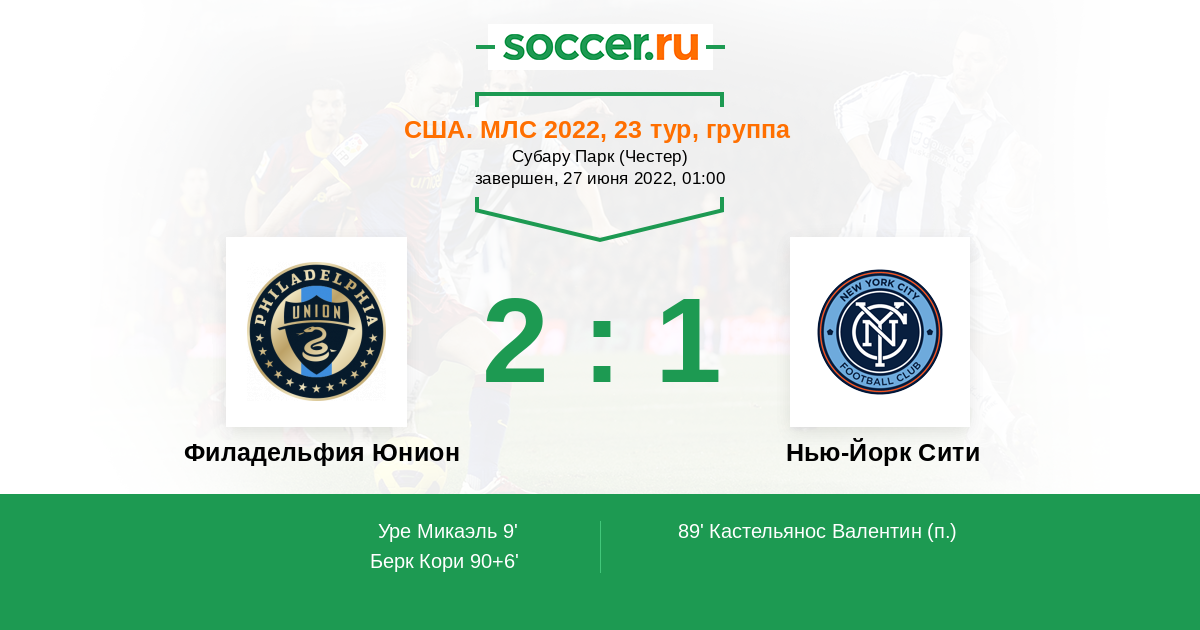 Филадельфия Юнион - Нью-Йорк Сити: обзор матча 27 июня 2022