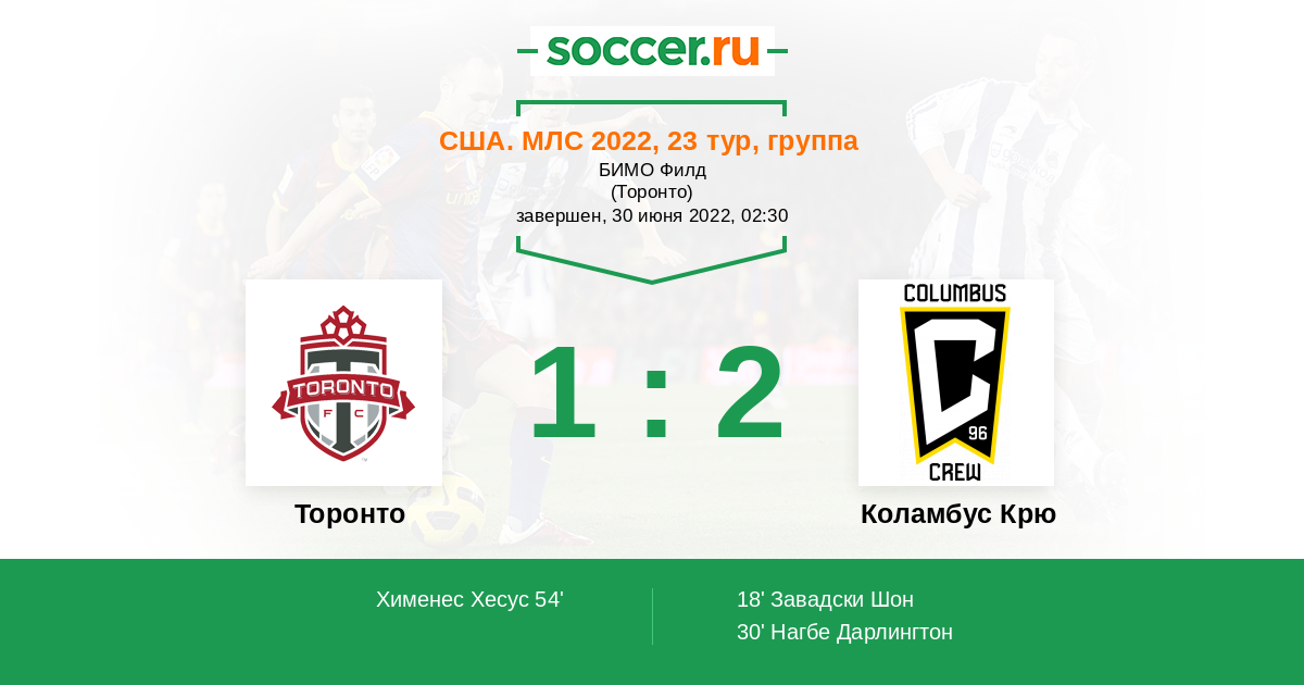 Торонто - Коламбус Крю: обзор матча 30 июня 2022