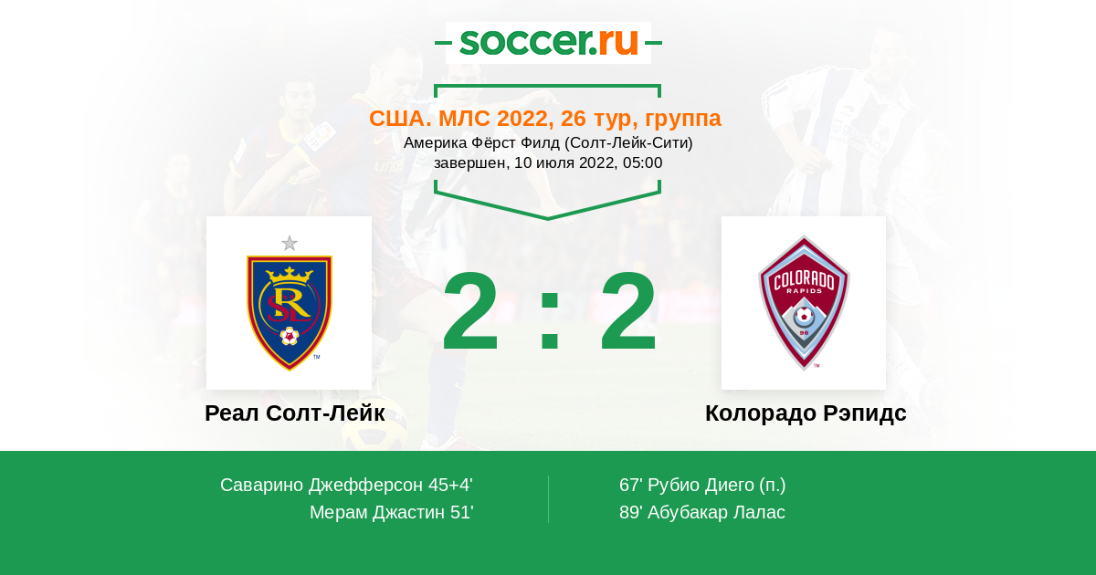 Реал Солт-Лейк - Колорадо Рэпидс: обзор матча 10 июля 2022