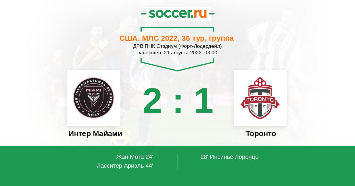 Интер Майами - Торонто: обзор матча 21 августа 2022