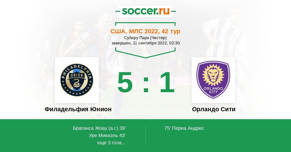 Филадельфия Юнион - Орландо Сити: обзор матча 11 сентября 2022